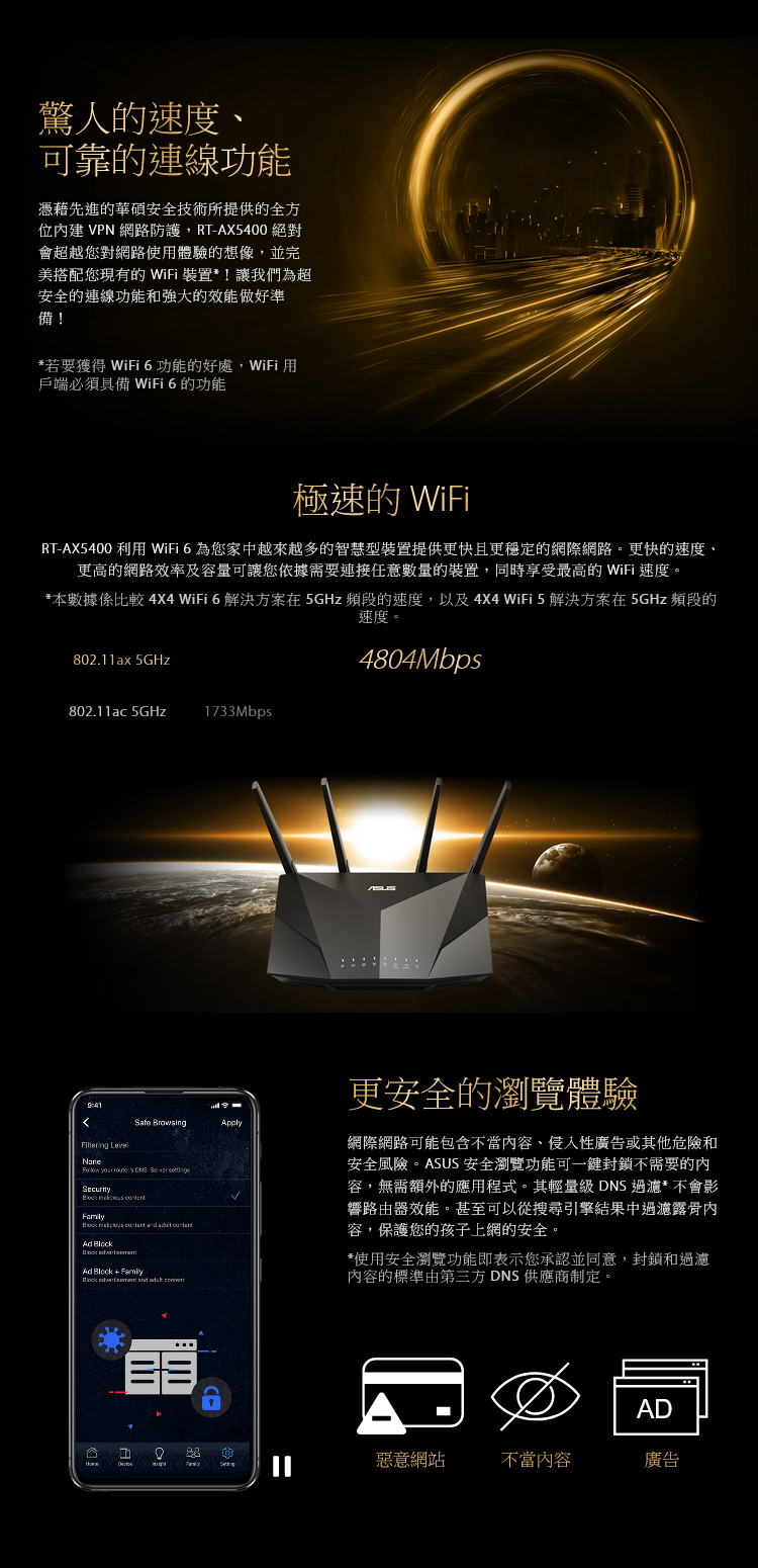 ASUS 華碩 AX5400 雙頻 WiFi 6 (802.11ax) 路由器 RT-AX5400
