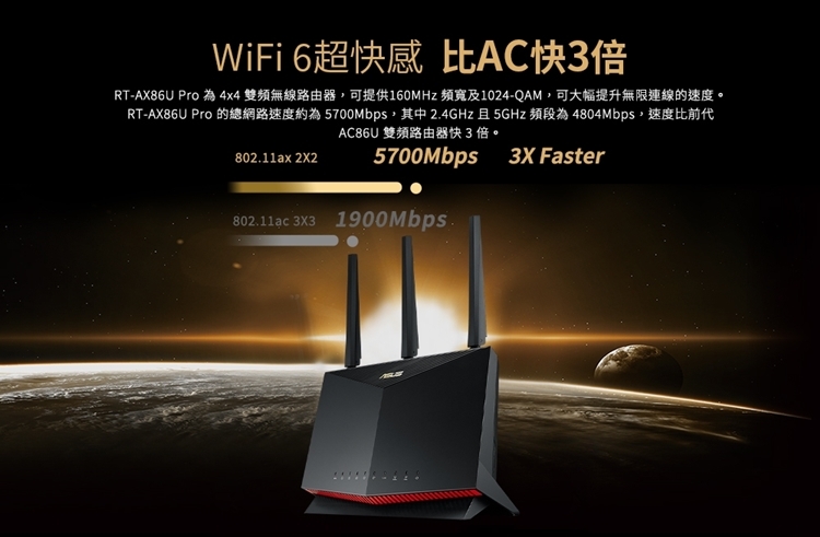 ASUS 華碩 雙頻 AX5700 路由器 RT-AX86U PRO