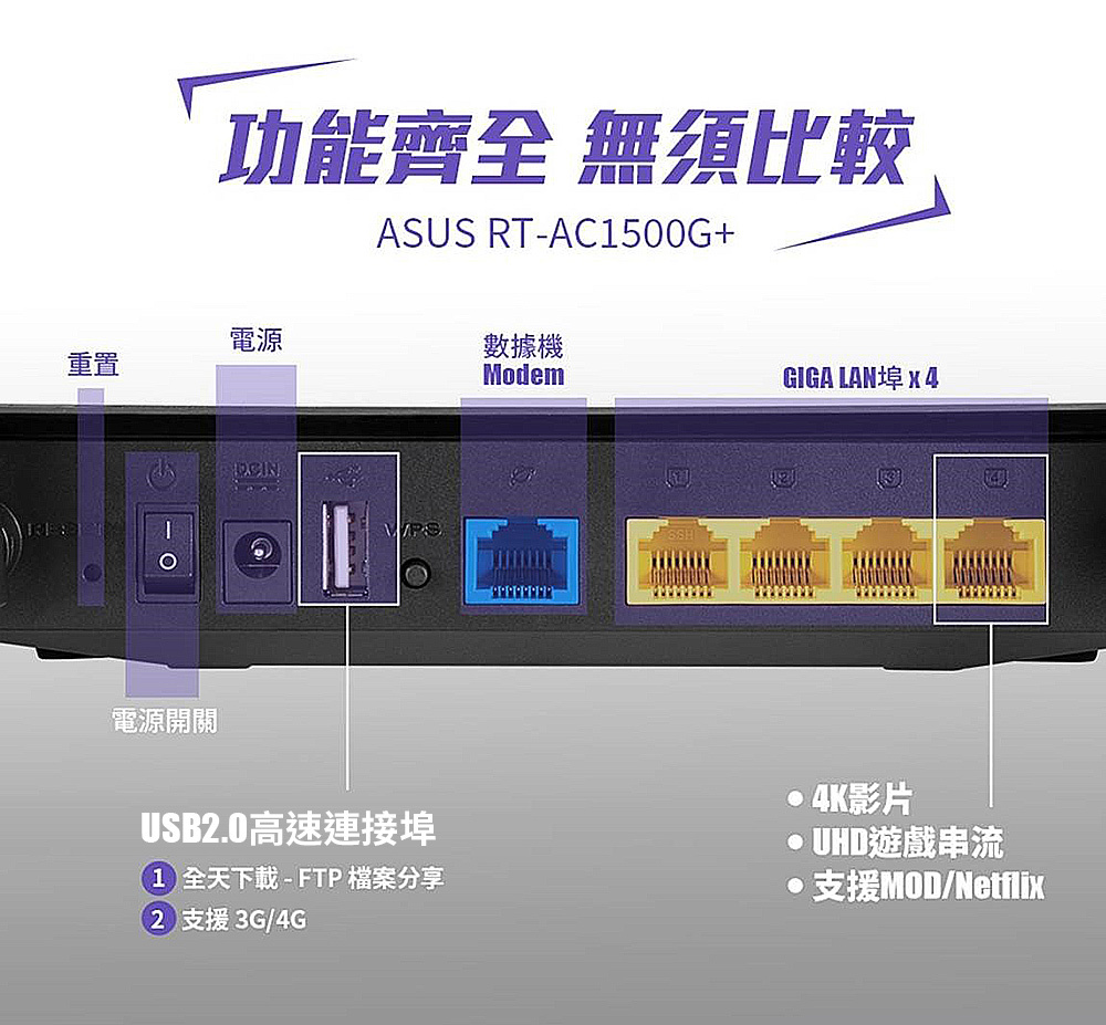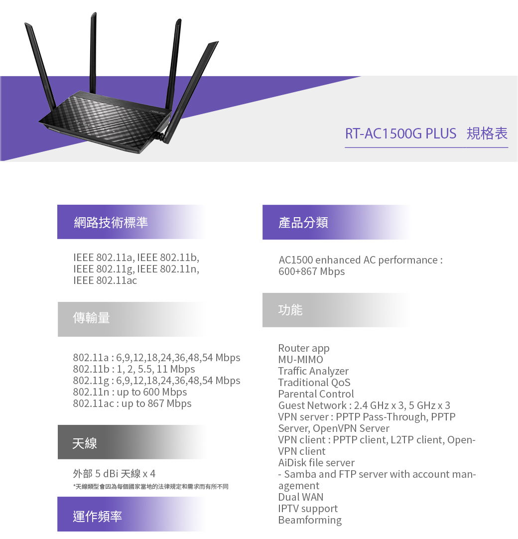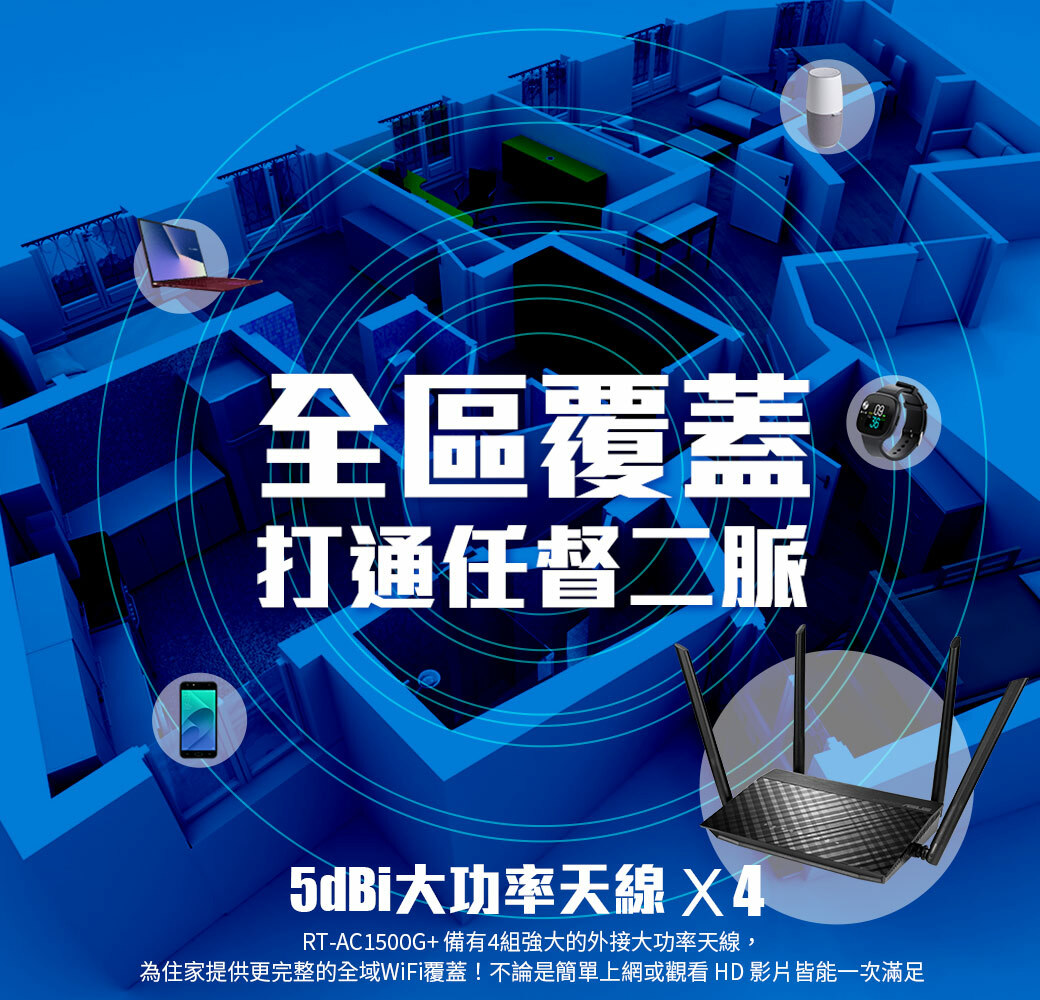 ASUS 華碩 雙頻 Gigabit Wi-Fi 分享器 RT-AC1500G PLUS