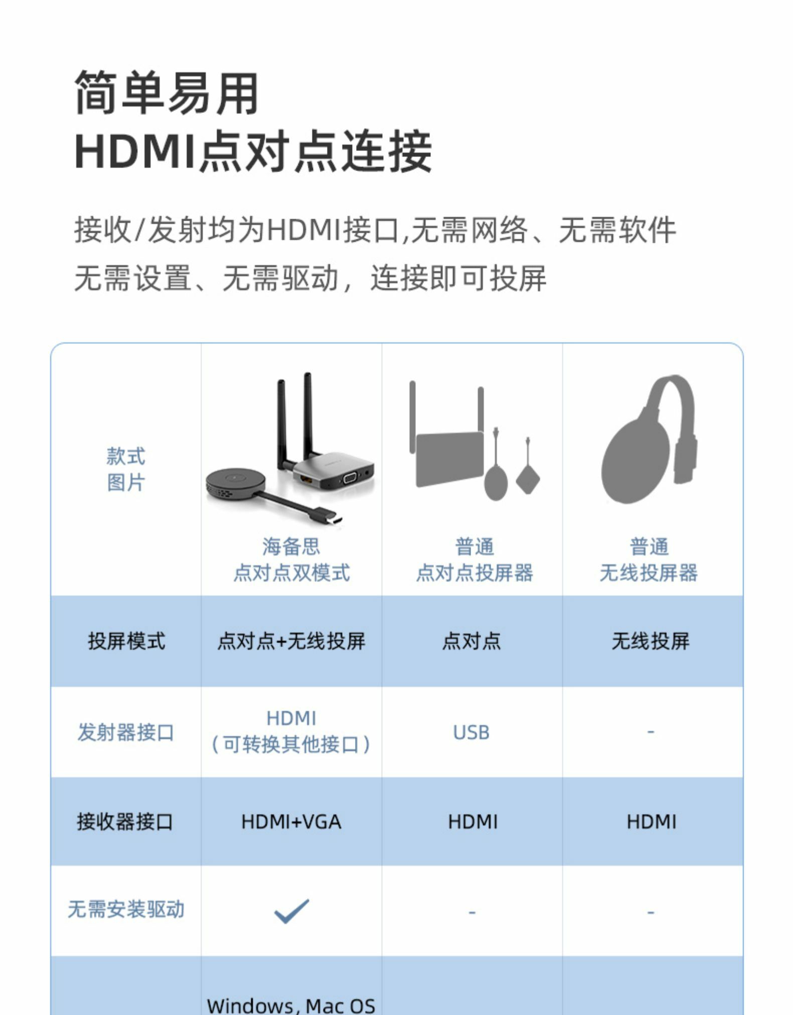 海備思 企業級 無線投影 手機 電腦 HDMI 傳輸器 連接 電視機 投影機 switch 點對點