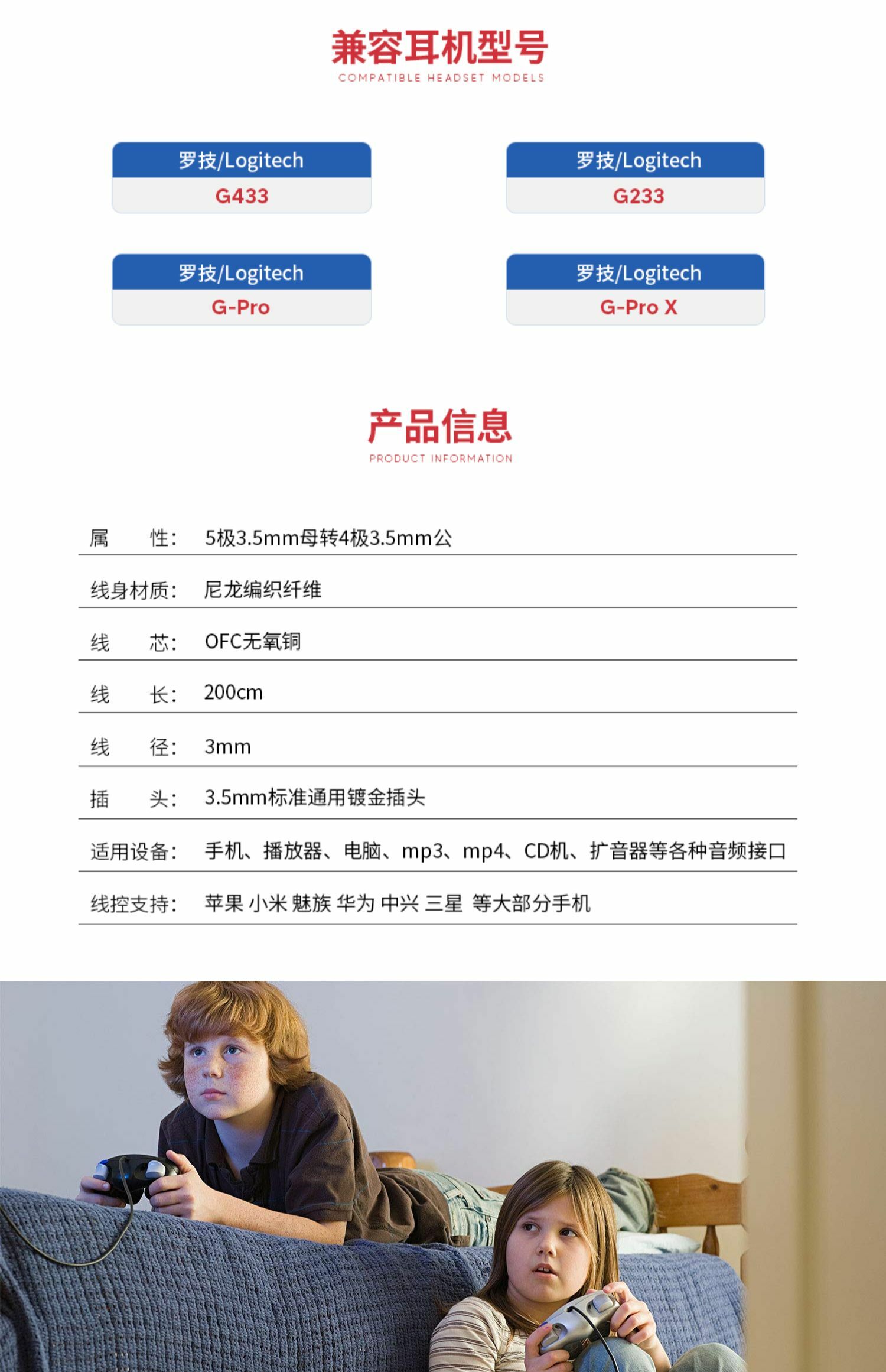 Logitech 羅技 G433 G233 G Pro X 編織延長耳機線 替換線