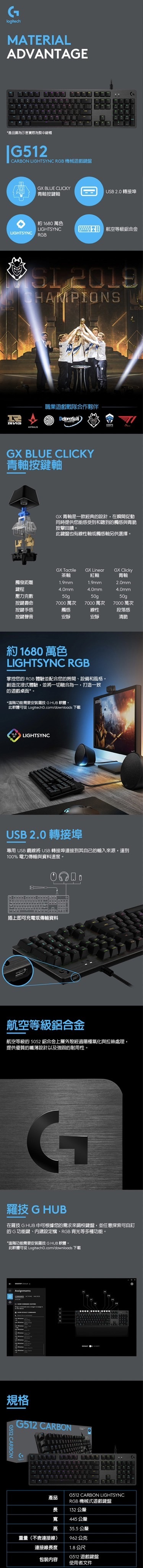 Logitech 羅技 G512 RGB 機械遊戲有線鍵盤