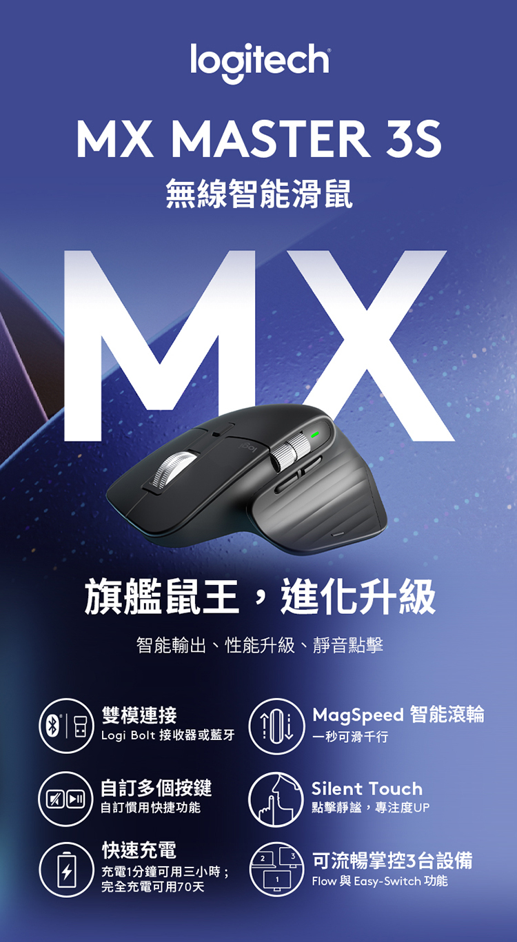 Logitech 羅技 MX MASTER 3S 無線滑鼠