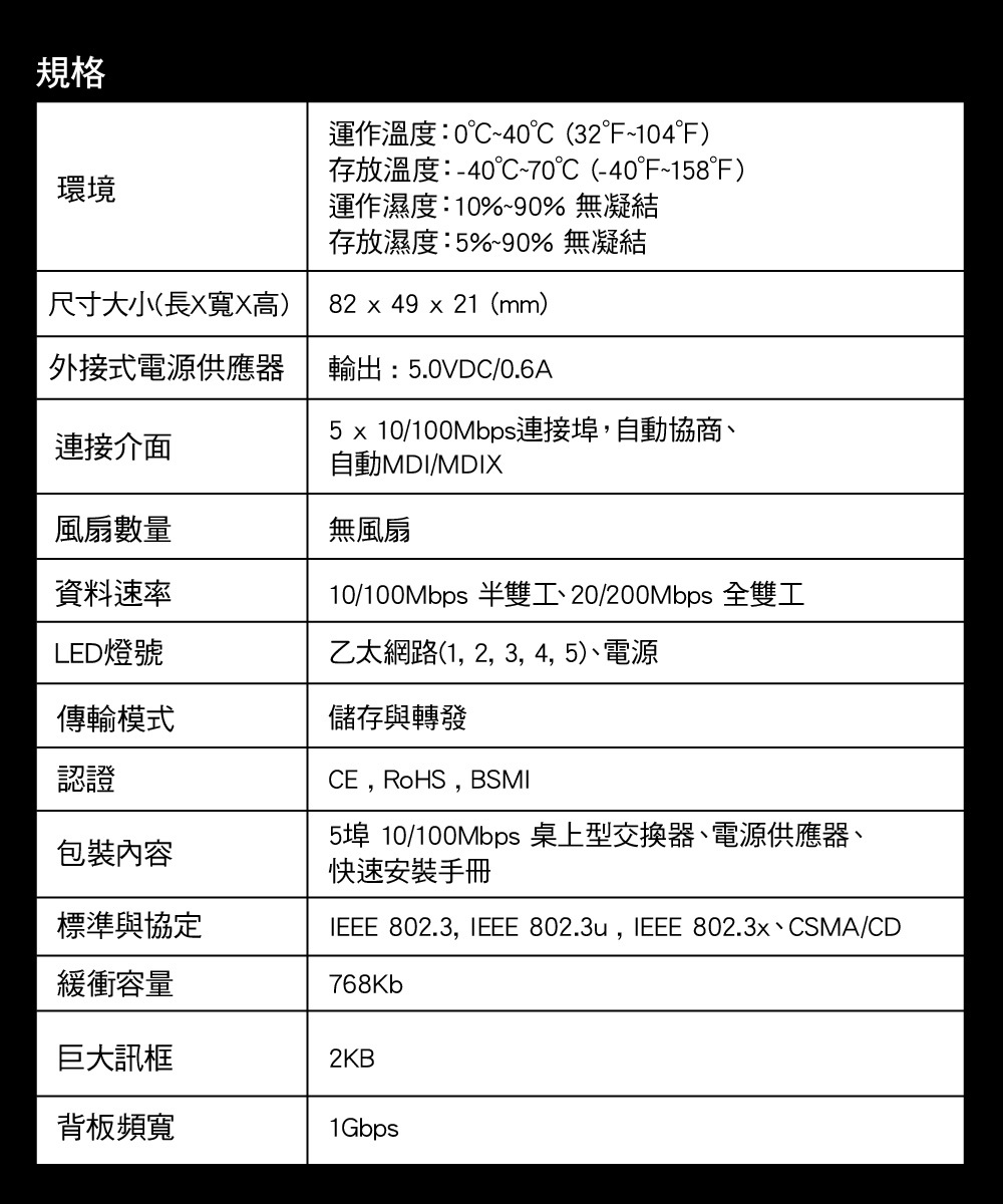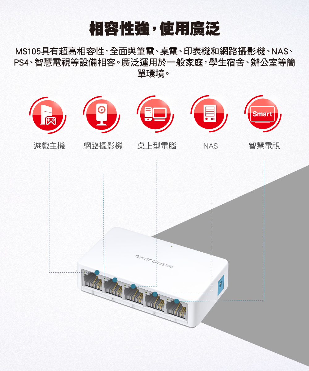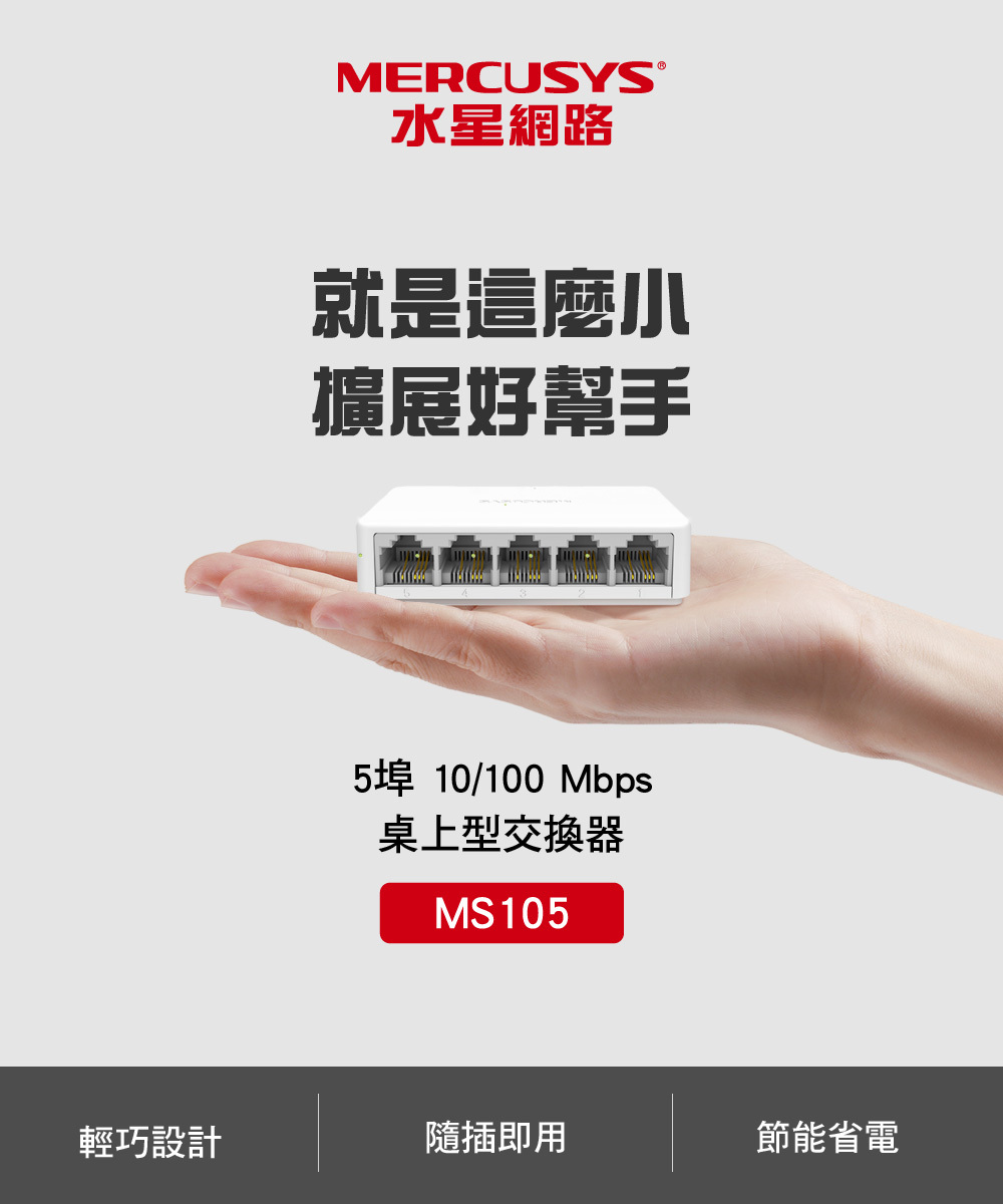 MERCUSYS 水星 MS105 5埠 10/100Mbps 桌上型交換器