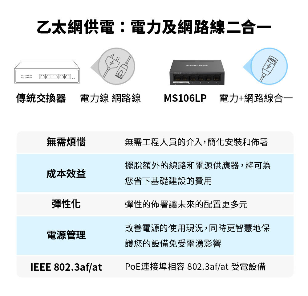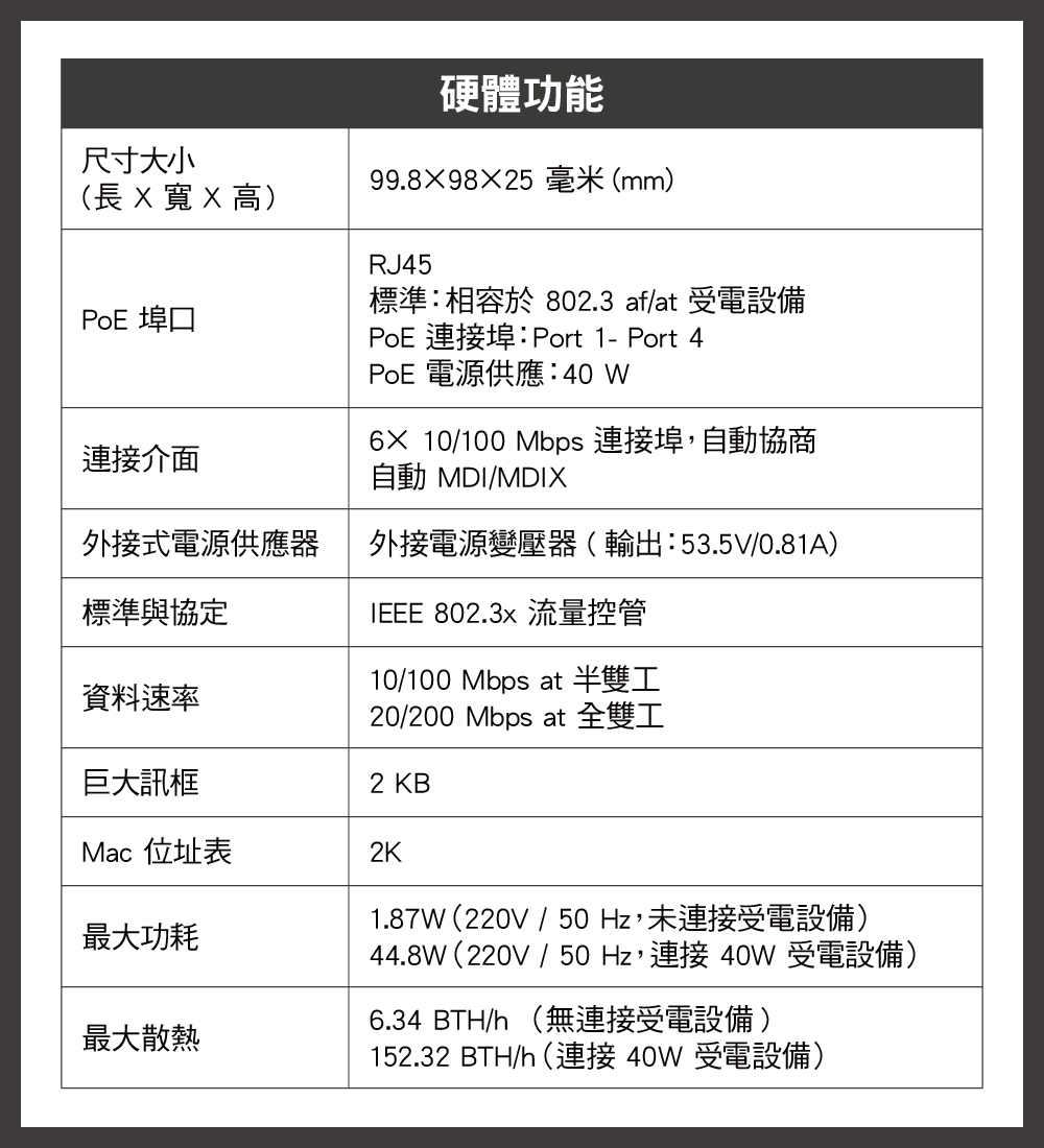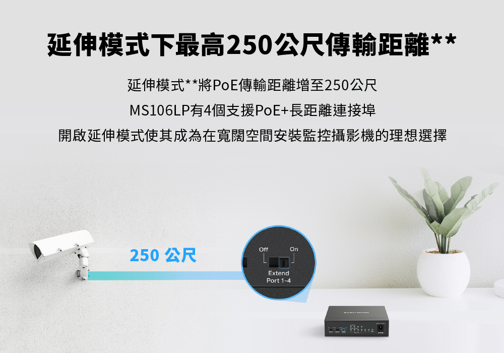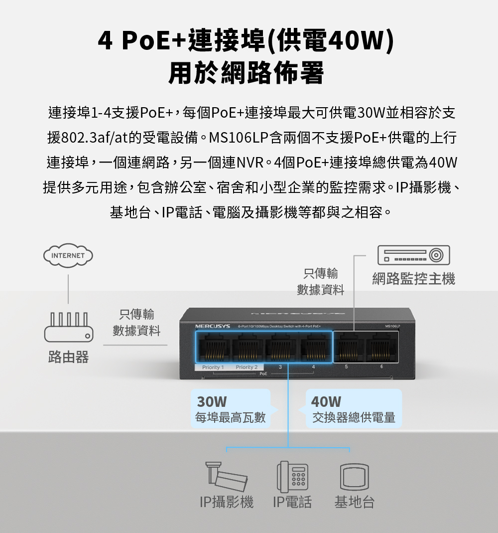 MERCUSYS 水星 MS106LP 6 埠 10/100Mbps 桌上型交換器 (含 4 埠 PoE+)