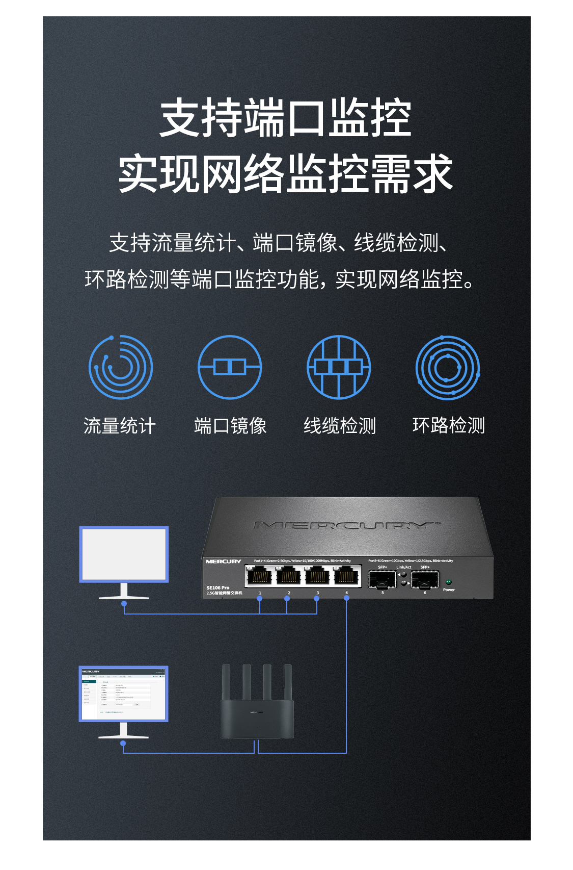 Mercusys 水星 SE106 Pro 2個10G SFP+ 4個 2.5G 網管交換器