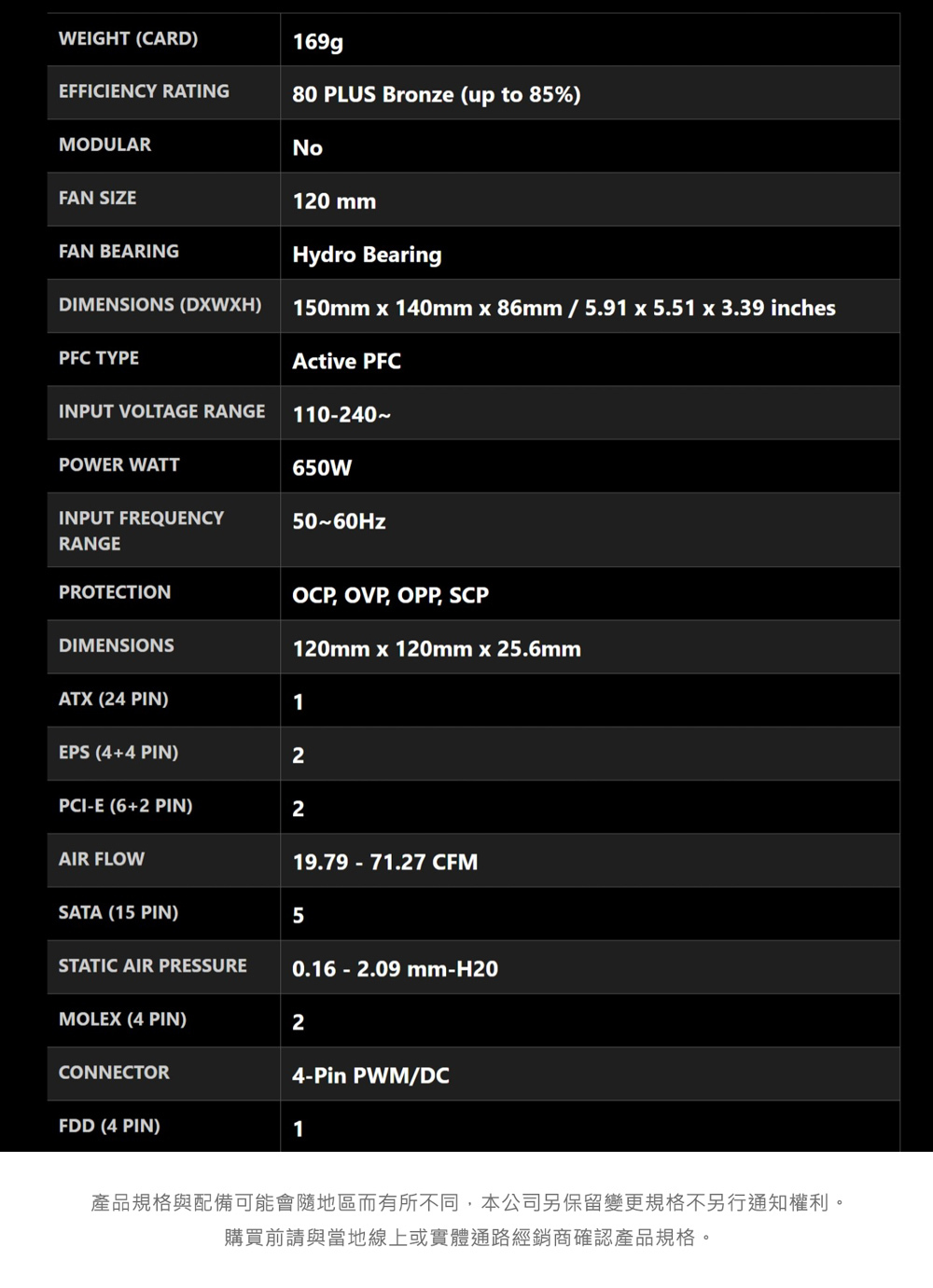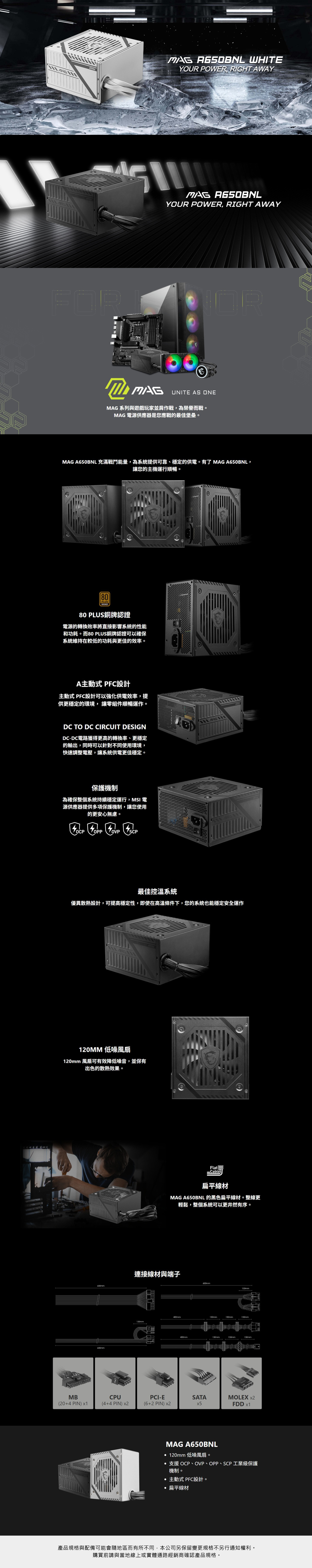 MSI 微星 MAG A650BNL 銅牌 650W 電源供應器