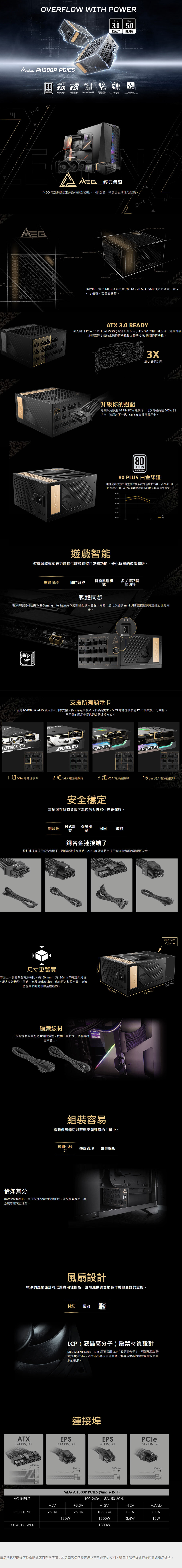 MSI 微星 MEG Ai1300P PCIE5 1300W 白金牌 ATX3.0 電源供應器