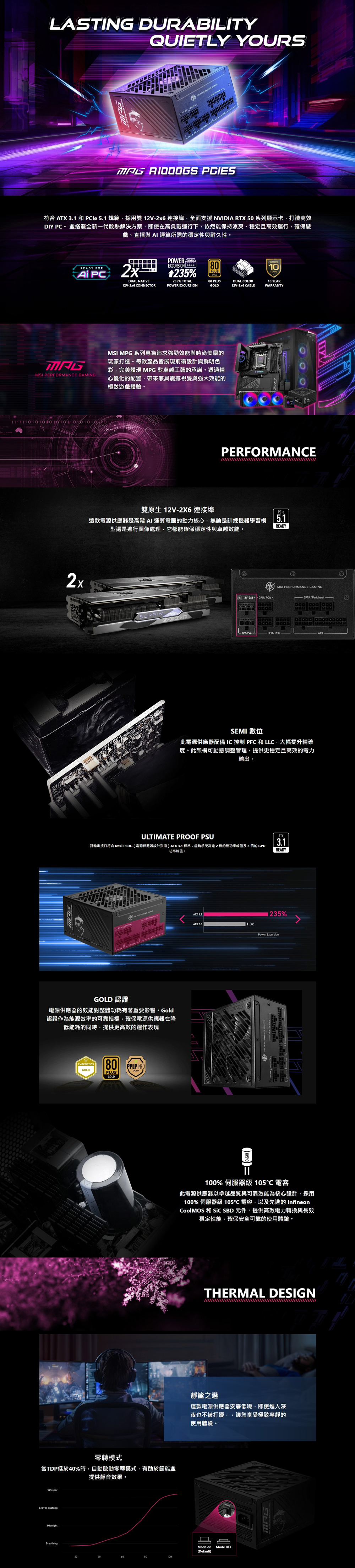 MSI 微星 MPG A1000GS PCIE5 1000W 金牌 ATX 3.1 電源供應器