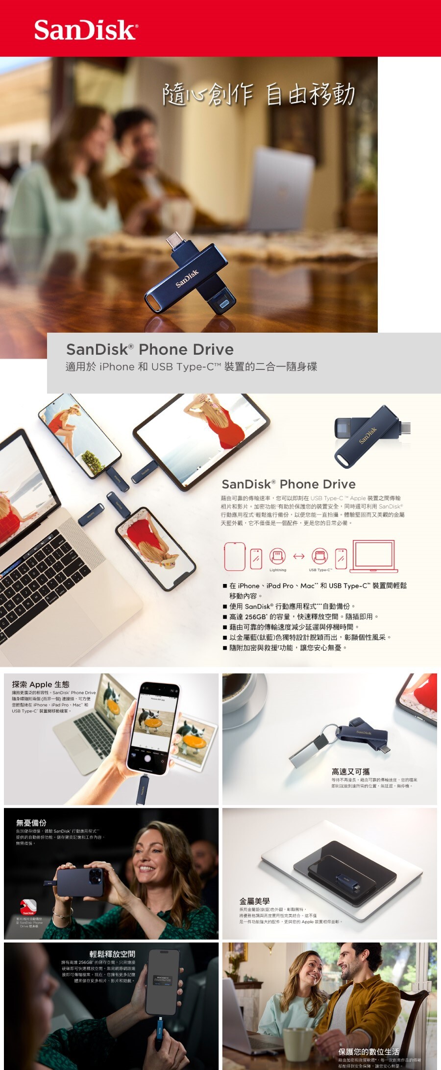 SanDisk Phone Drive 雙介面 OTG iPhone 64G 128G 256G 雙用隨身碟 IXPAND-D0N