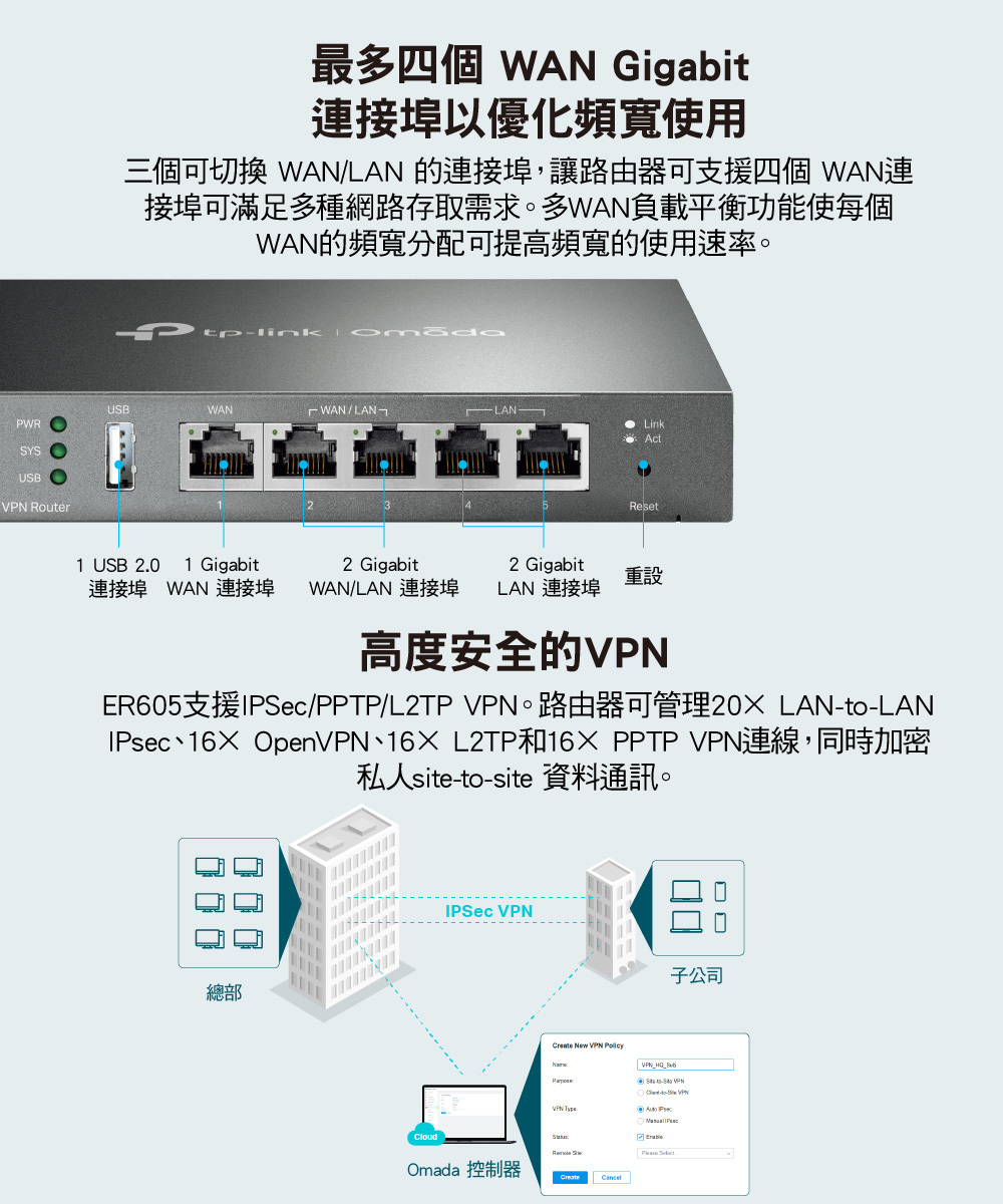 TP-LINK ER605 Omada Gigabit VPN 路由器