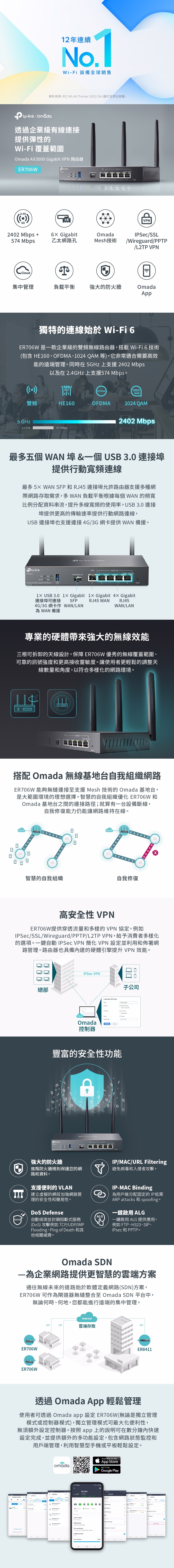 TP-Link ER706W Omada AX3000 雙頻 Gigabit VPN 雲端管理路由器
