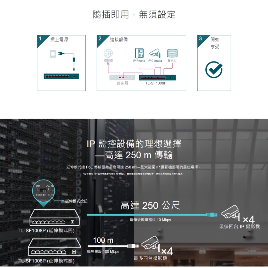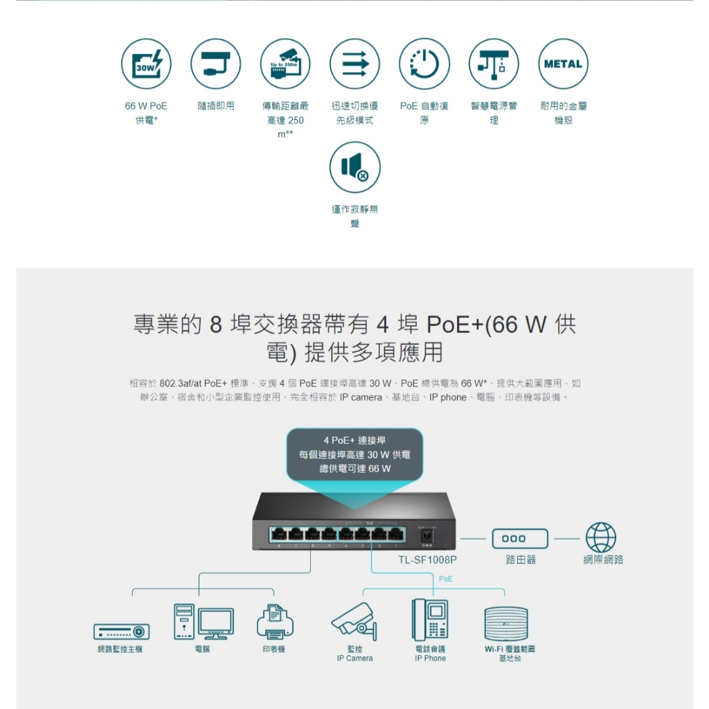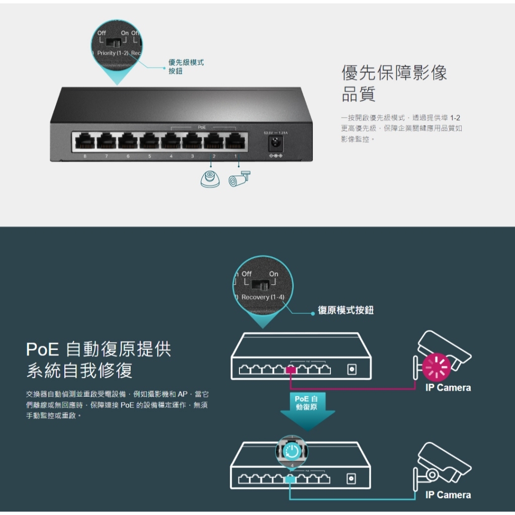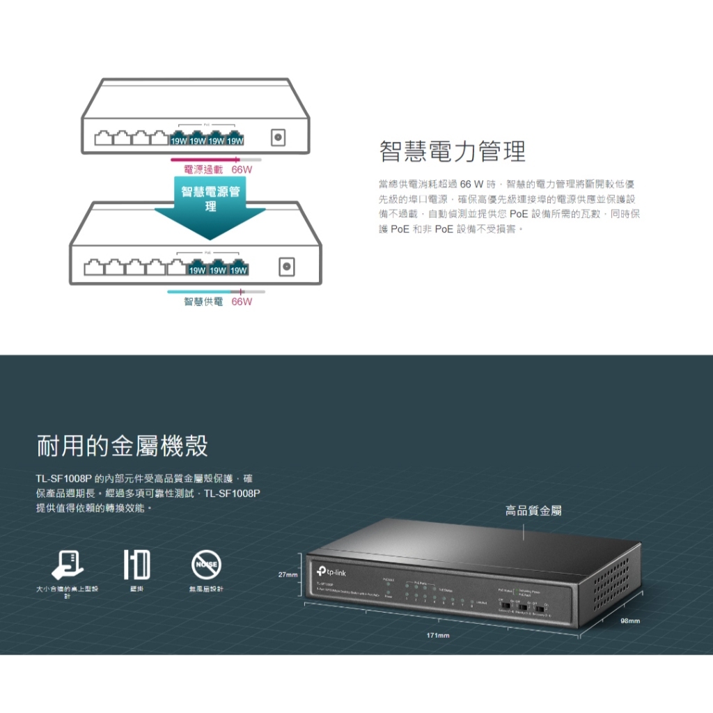 TP-LINK TL-SF1008P 8 埠 10/100M 桌上型 PoE 交換器