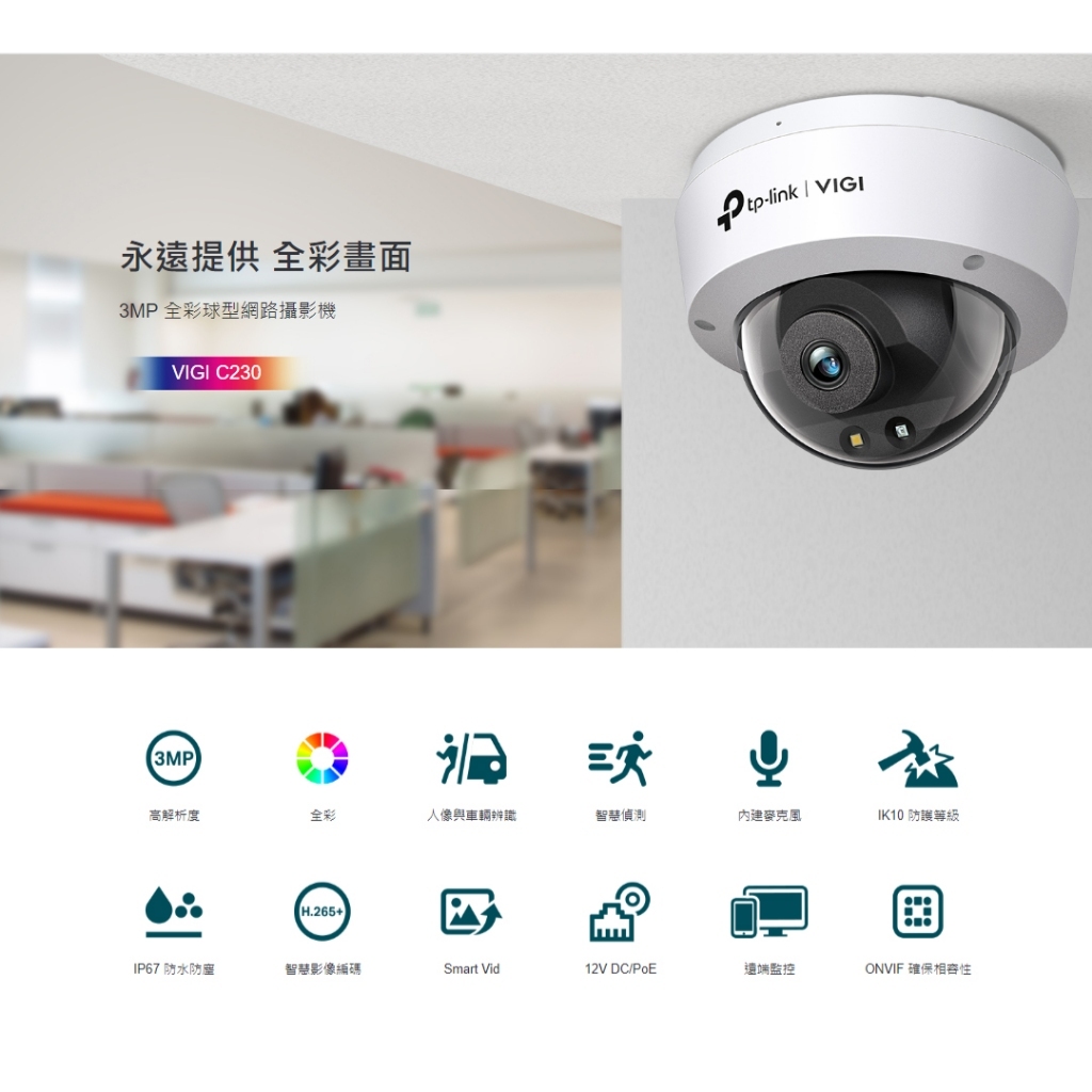 TP-LINK VIGI 3MP 全彩球型監視器 VIGI C230