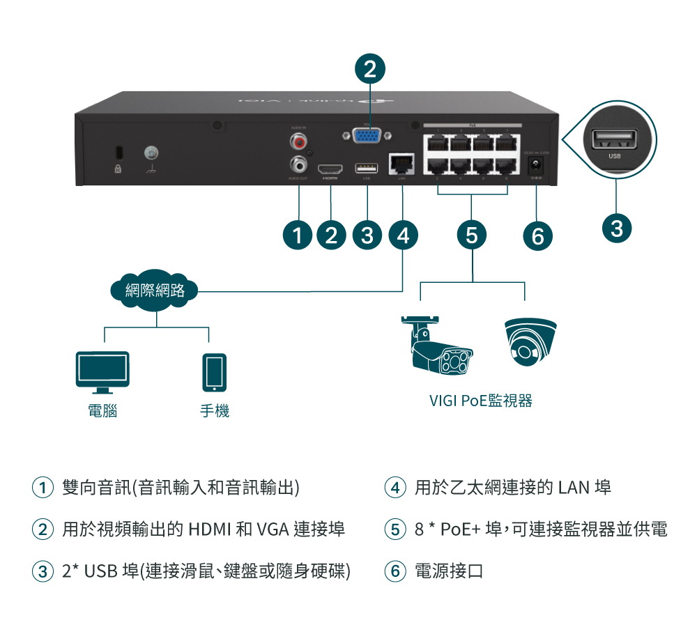 8× 10/100 Mbps PoE+ 連接埠,113 W PoE 總功率△