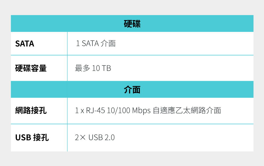 1 個 SATA介面,最高支援 16 TB *
